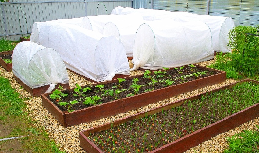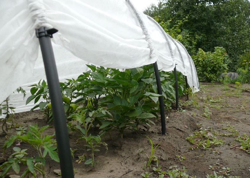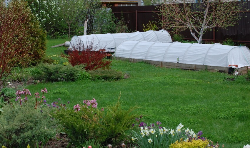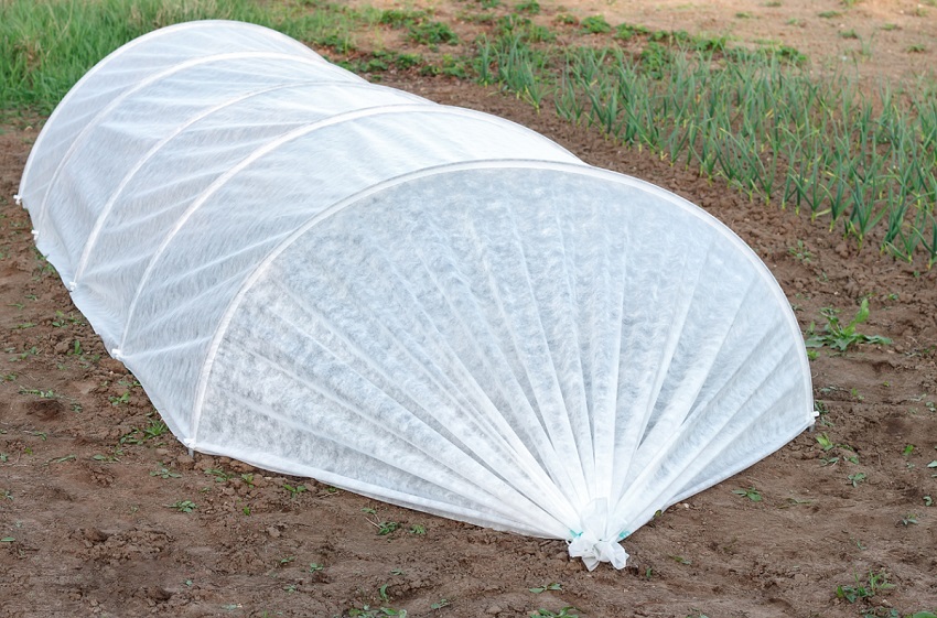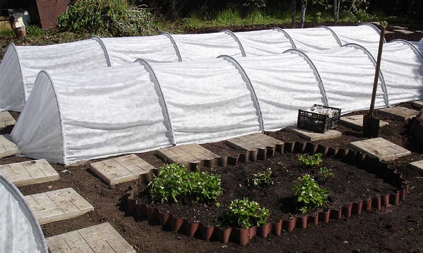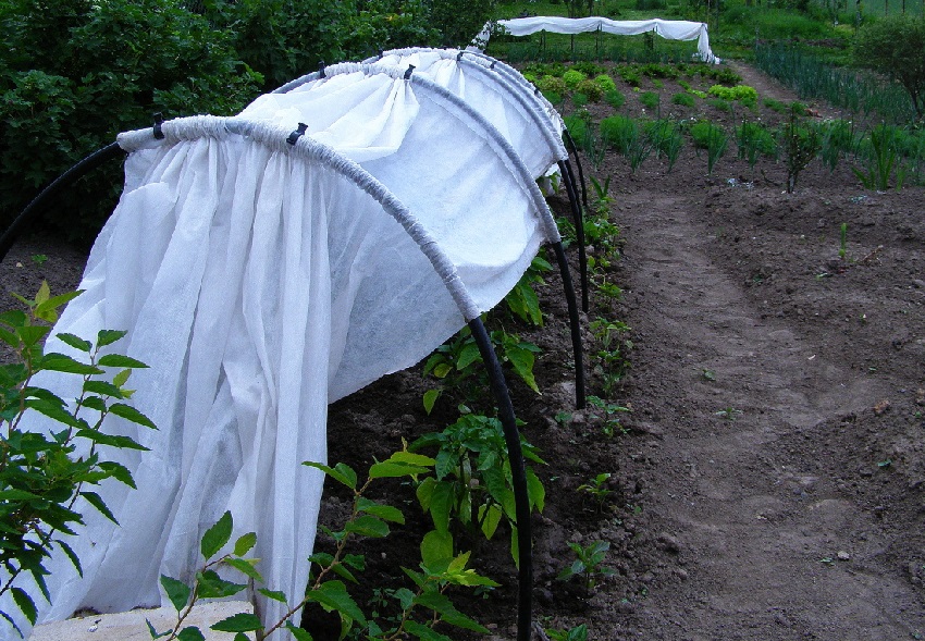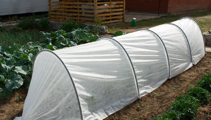 Koristan savjet! Još jednostavnija opcija je kupnja staklenika izrađenog od pokrivnog materijala čiji su lukovi ušiveni u netkano platno. U ovom slučaju, sve što vam preostaje jest razviti konstrukciju u vrtnom krevetu, postaviti je na pravo mjesto i zabiti klinove u zemlju kako biste osigurali njezinu stabilnost.