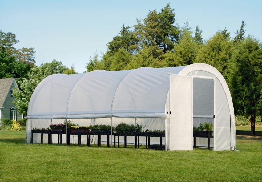 Staklenici za šatore imaju puno jednostavniji dizajn, jer njihova konstrukcija nije povezana s potrebom savijanja cijevi. U većini slučajeva staklenici za šatore izrađuju se samostalno, iako su gotovi modeli dostupni i za prodaju.