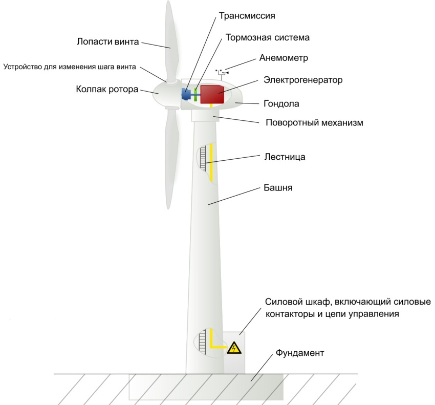 - egy lapátos rotor (a modell jellemzőitől függően több lapát lehet egy szélgenerátor számára, általában 2 vagy 3 van belőlük, bár vannak több lapátos opciók is);
