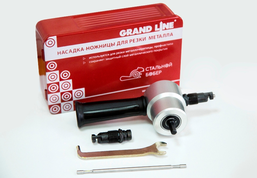 Ma már nagyszámú különféle fúrófej található, amelyeknek köszönhetően nemcsak egyenes vonalban vághat fémeket, hanem göndör vágásokat is végezhet. Erre szükség van szellőzőcsatornák, tetőszerkezetek, ereszcsatornák telepítésekor. A melléklet használatával bármilyen helyzetben vághat, előzetes beállítások nélkül.