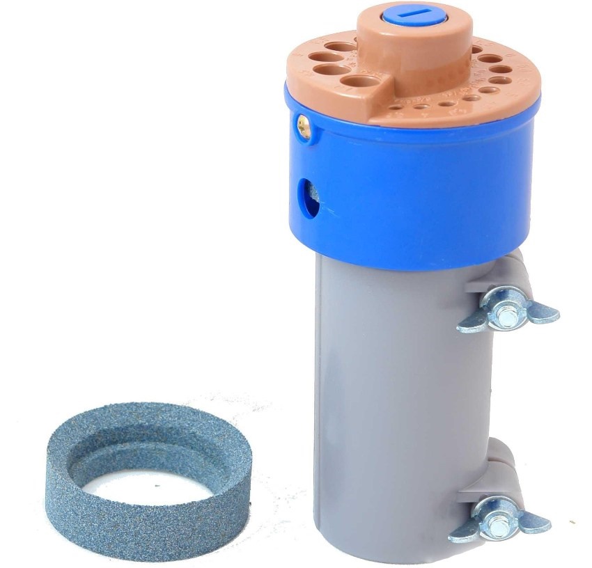 Számos modern modellnek a testén van egy zárósapkája, amelyben különböző átmérőjű furatok találhatók a különböző méretű fúrók élezéséhez. Ezeket a lyukakat úgy készítik, hogy az élező elem egy bizonyos helyzetben érintkezzen a csiszolókerékkel.