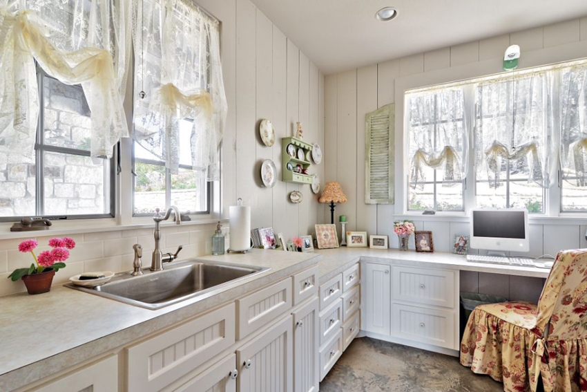 Előnyös, ha a konyhába könnyű függönyöket választanak provence-i stílusban, bonyolult lambrequins és dekorációk nélkül
