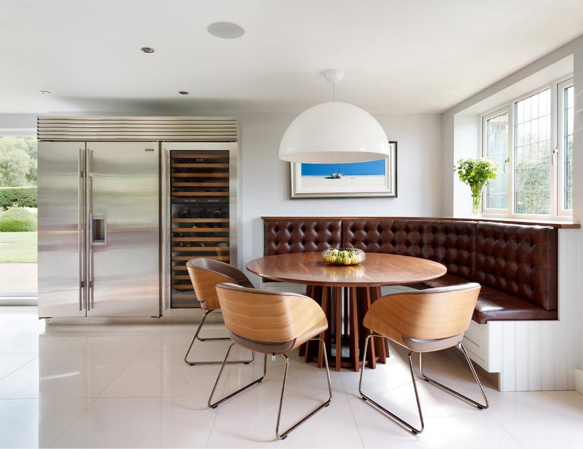 - Külön étkező. Ha elegendő szabad hely van a konyhában, akkor egy nagy asztalt kell elhelyeznie, és zárt térben ajánlott a konyhát az egyik szobával kombinálni.