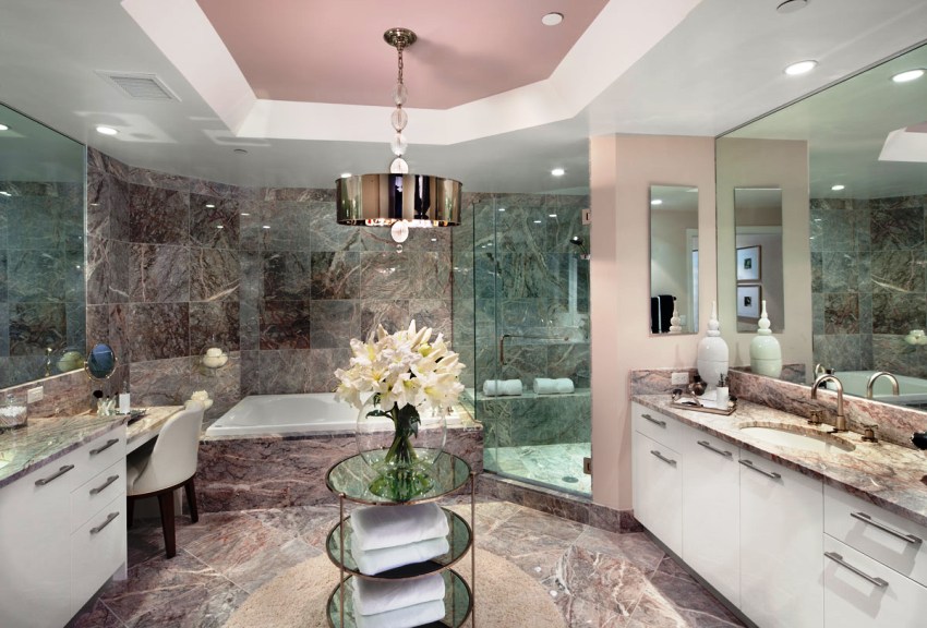 Mesterséges kőből készült munkalap a fürdőszobához a szoba
