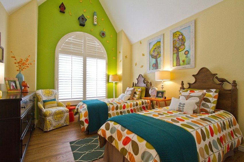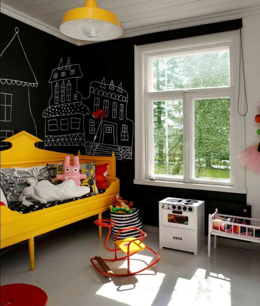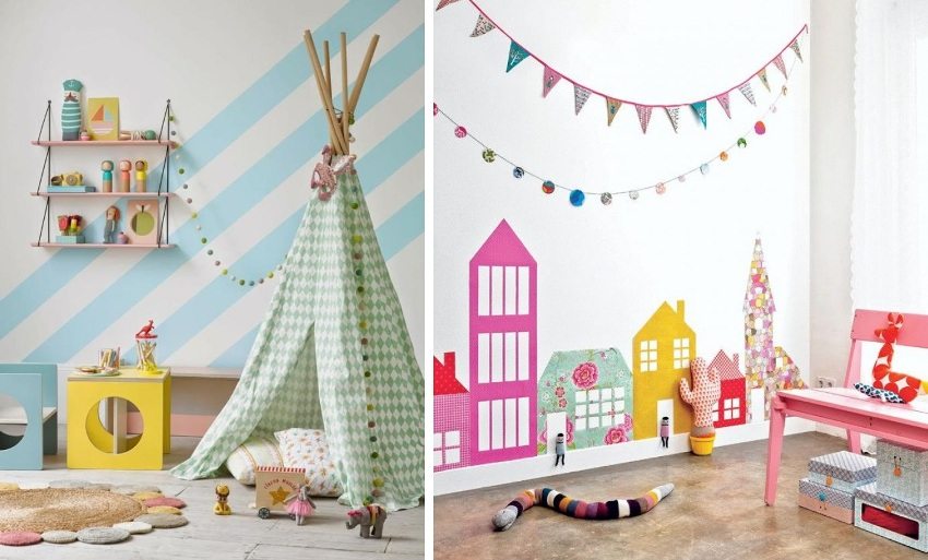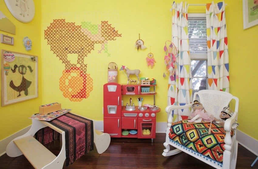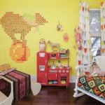 A gyermekszoba falainak díszítéséhez a szivárvány színei tökéletesek - napsárga és narancssárga, minden árnyalatú zöld, kék, rózsaszín és bézs. Sőt, nincs korlátozás az egyidejűleg használt színek számára ebben a szobában. Ezenkívül a gyermek mindenképpen választani akar, és még megpróbálja festéket is felhordani a falra.