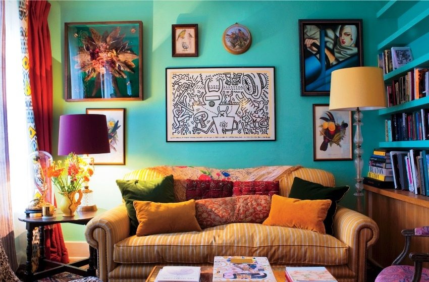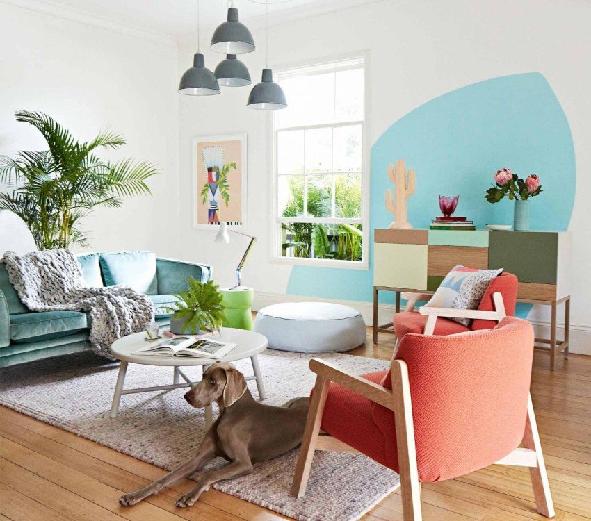 Nappali - a legmegfelelőbb hely a "színes" kísérletekhez. Abszolút bármilyen árnyalat harmonikusan fog kinézni ebben a szobában, feltéve, hogy sikeresen kombinálják a bútorokkal és az általános a lakás stílusa általában.
