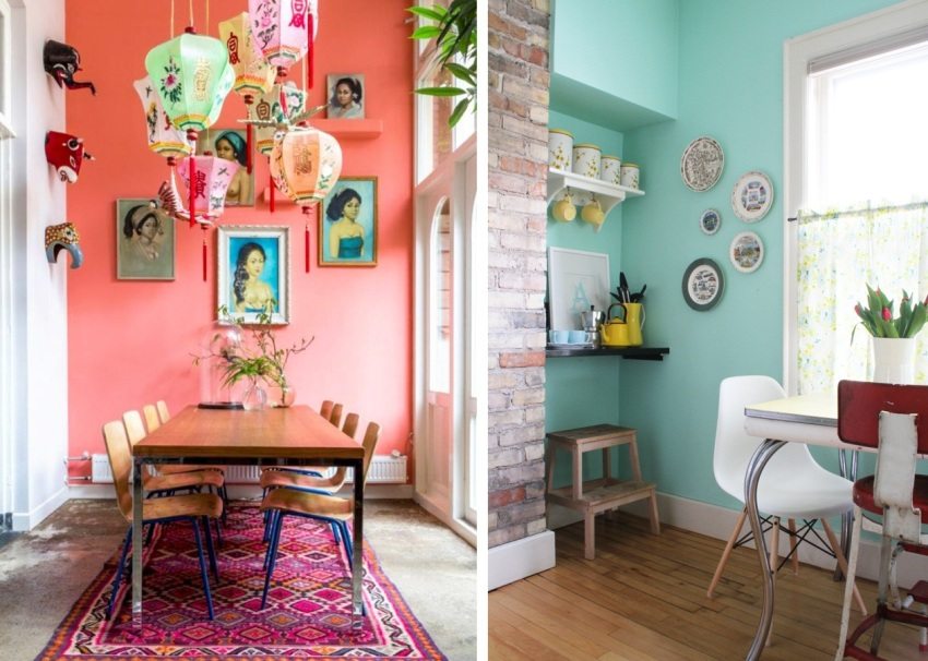 Élénk példák az étkező kialakítására tapéta a festéshez