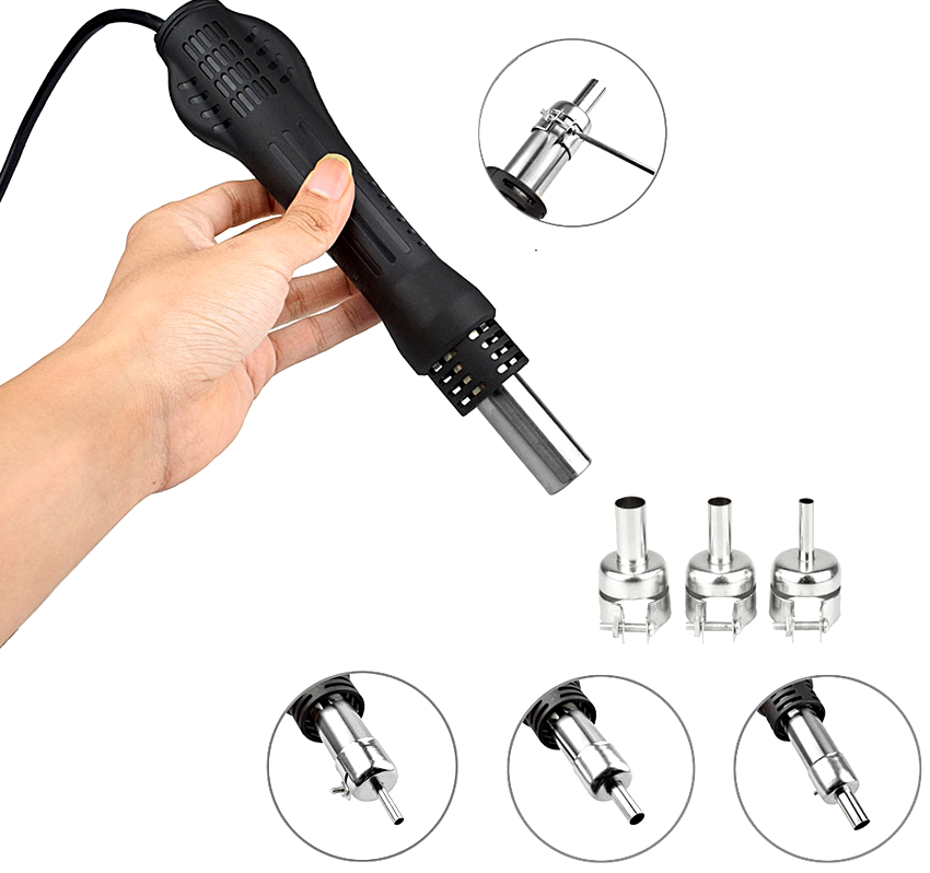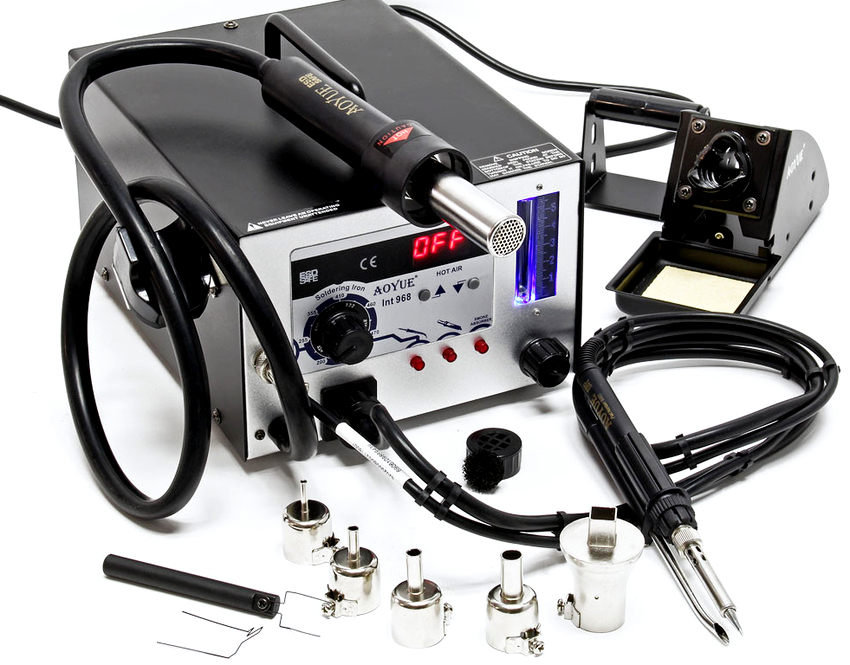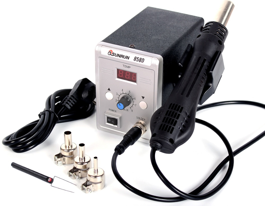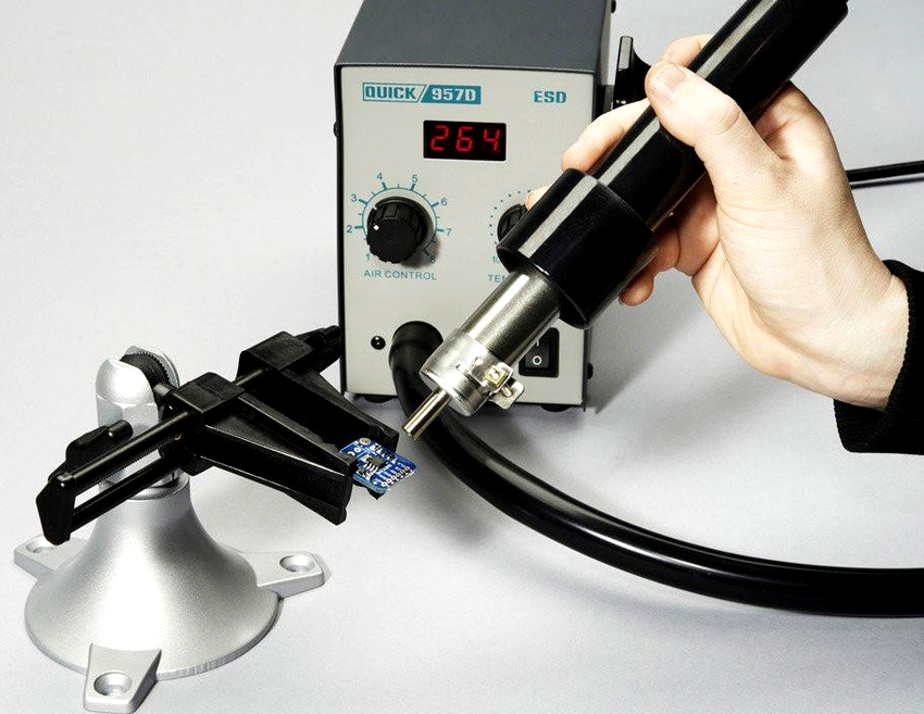 La réalisation de cartes multicouches et de circuits intégrés miniatures, ainsi que l'augmentation de la densité de petites pièces avec un grand nombre de broches, nécessitent l'utilisation d'outils délicats et spécifiques. L'un de ces appareils est une machine à souder avec un sèche-cheveux. Cet appareil est un ensemble d'outils conçus pour effectuer des soudures groupées ou uniques de composants.