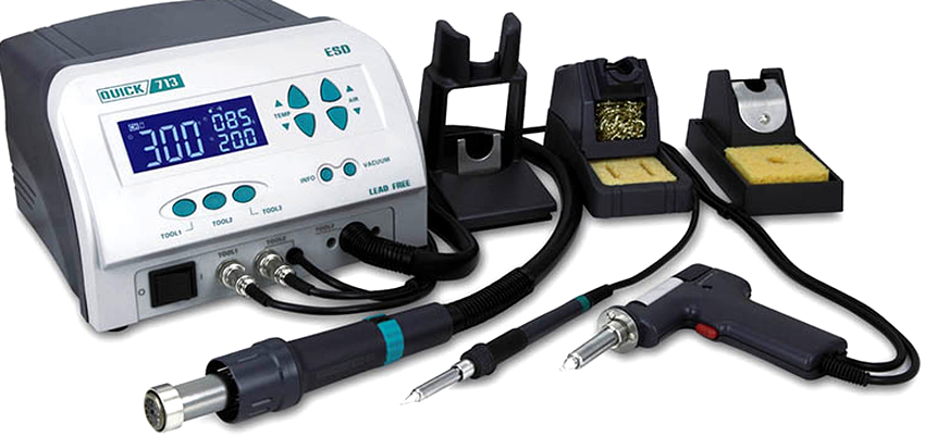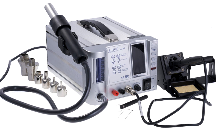 Une station de soudage avec sèche-cheveux est le principal outil nécessaire à la production et à la réparation de tout appareil électronique. Cet équipement permet d'interconnecter des composants électroniques. L'outil est très pratique car il est généralement équipé d'un module numérique ou d'un système de contrôle analogique.
