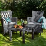 VEDDO. Questa serie di mobili è pensata per giardini di tutte le dimensioni. Tutti gli articoli sono realizzati in plastica resistente e acciaio. Sono in grado di sopportare varie sollecitazioni meccaniche. La linea di mobili Weddo comprende un tavolo oltre a 2 sedie e uno sgabello. I prodotti non richiedono cure particolari.