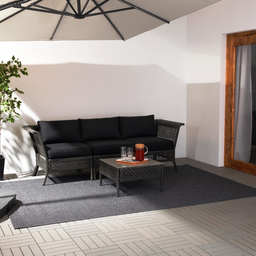 KULGSHOLMEN. Questo set di mobili da giardino è progettato per un comodo passatempo. Il set è composto da un tavolo e da morbidi divani in rattan. Sul sito Web del produttore è possibile selezionare l'opzione desiderata.