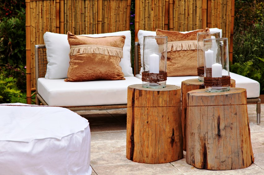Mobili da giardino fatti di tronchi: una soluzione non standard ed elegante per una residenza estiva
