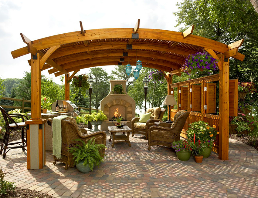 I mobili da giardino in legno sono più adatti per le aree private in stile country. Le strutture in legno sono trattate con speciali composti protettivi. Ciò consente di migliorare notevolmente le loro caratteristiche tecniche e prolungare la loro vita operativa.