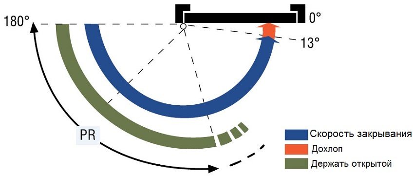 I modelli migliorati di chiudiporta hanno una valvola aggiuntiva che consente di trattenere il movimento dell'anta. Ciò accade quando la porta viene aperta già a 70 gradi prima della chiusura, e appena prima della chiusura (quando rimane fino a 15 gradi), il movimento accelera, il che contribuisce a una forte pressione della porta. Grazie a questo design, il più vicino fa fronte alla forza dei chiavistelli sulle porte e supera la resistenza dell'aria generata durante la chiusura.