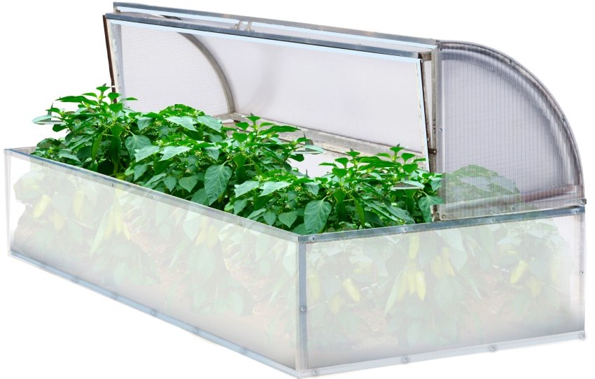 Le serre aperte in policarbonato sono convenienti per la coltivazione di piccole piante come erbe aromatiche, peperoni o fragole