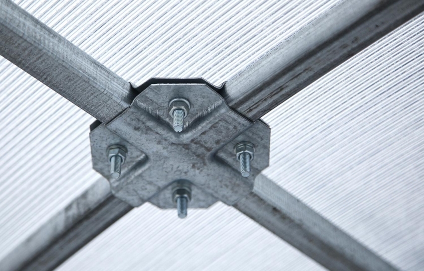 Per il fissaggio di profili in acciaio, vengono utilizzati angoli speciali, che garantiscono l'affidabilità e la durata dell'intera serra