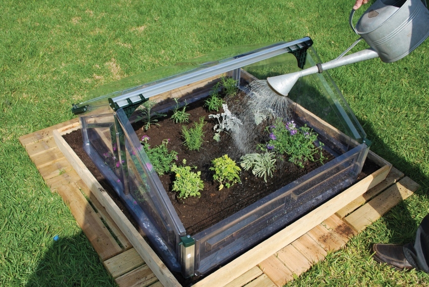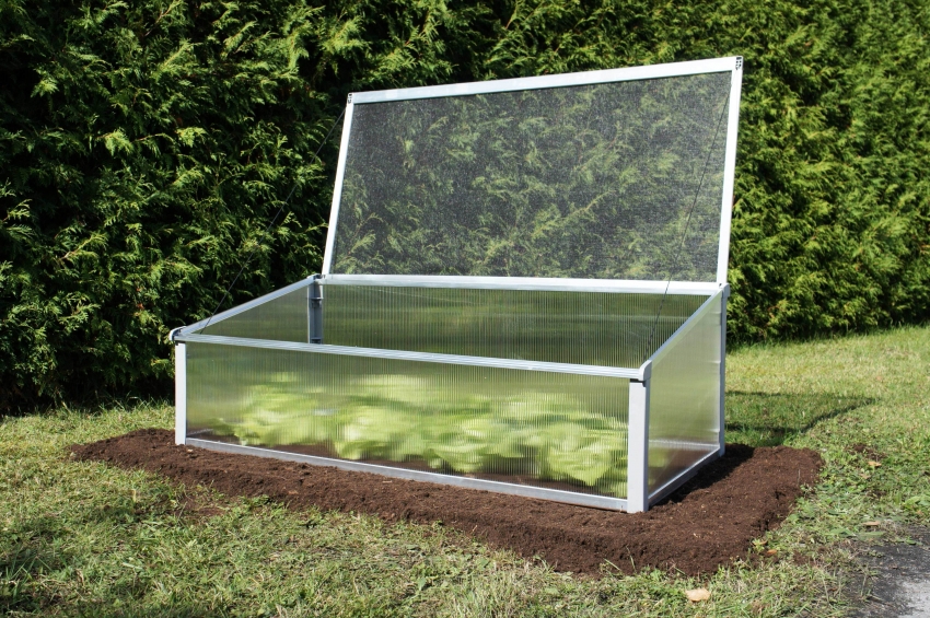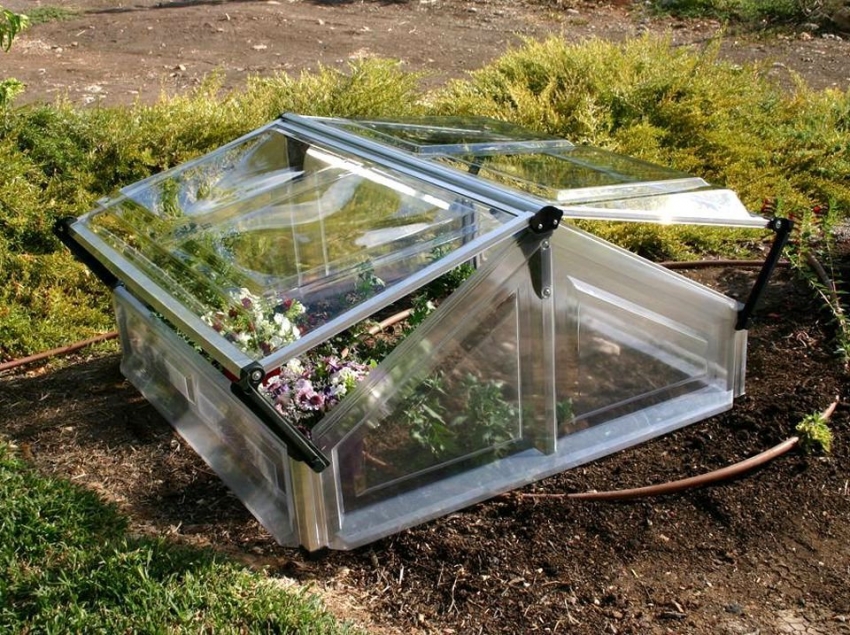 Un esempio di implementazione di un design semplice di una serra con un coperchio apribile che può essere facilmente spostato in un'altra posizione