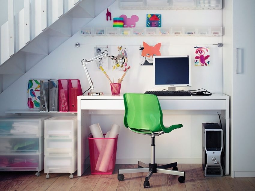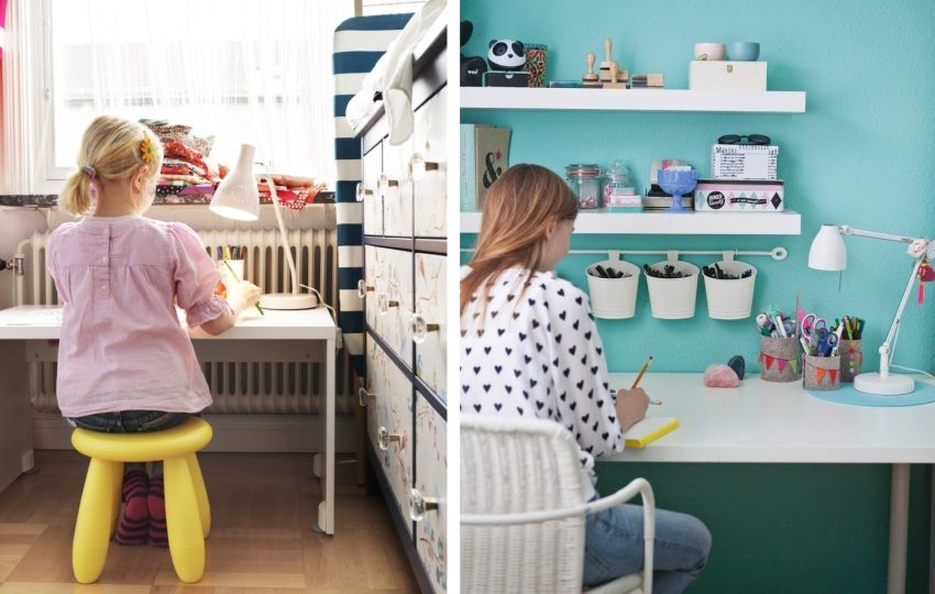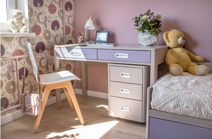 השולחן והכיסא צריכים להיות מתאימים לגיל הילד. לא כדאי לחסוך ולהשתמש, למשל, בריהוט ילדים קטן לחדר ילדה, שכבר "צמח" מתוכה. האפשרות האידיאלית במקרה זה יכולה להיות רהיטי שנאים, אשר ניתן להפחית או להגדיל את גובהם בהתאם לגובה הילד. נוכחותן של מגירות השולחן תאפשר לך לאחסן באופן קומפקטי את הציוד המשרדי שלך. יש למקם את השולחן קרוב ככל האפשר לחלון, וגם ליד שקעי חשמל - כדי להתחבר מנורת שולחן, מחשבים וציוד אחר.