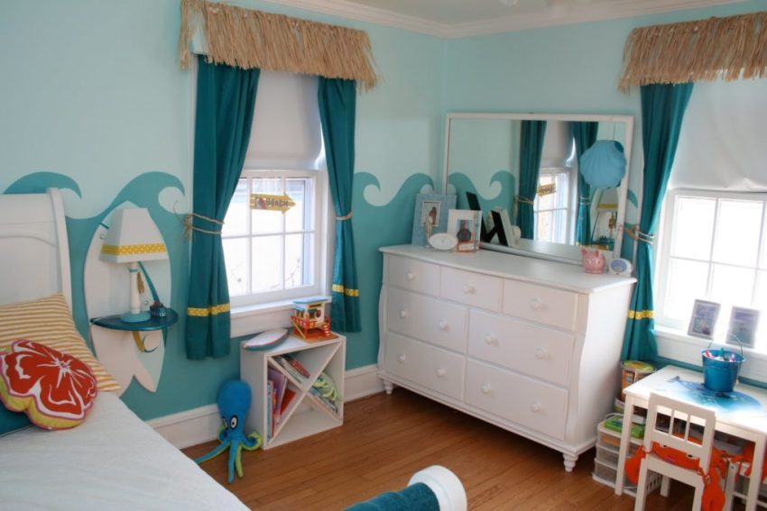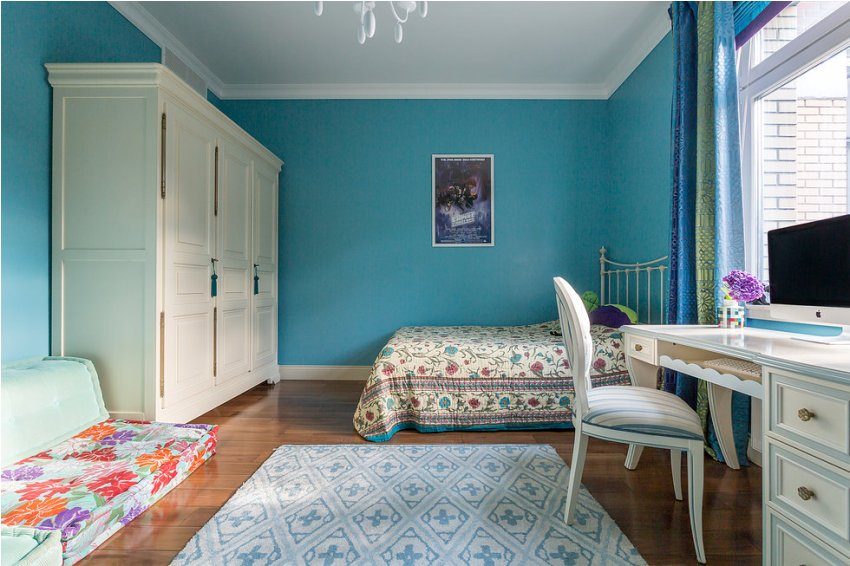 לעתים קרובות, נעשה שימוש בגוון כחול לקישוט חדר לילדה, הן כצבע הצבעים המדולל העיקרי והן לדילול נוסף. לצבע הכחול גוונים רבים (כחול שמים, טורקיז בהיר, אולטרה-מרין, אפור-כחול, מנטול), וכל שילוב ביניהם נראה מרהיב.