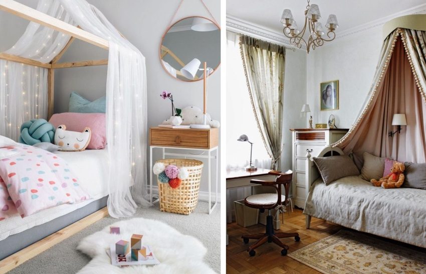 דוגמאות למיטות עם חוּפָּה בחדר הילדים