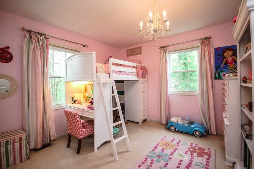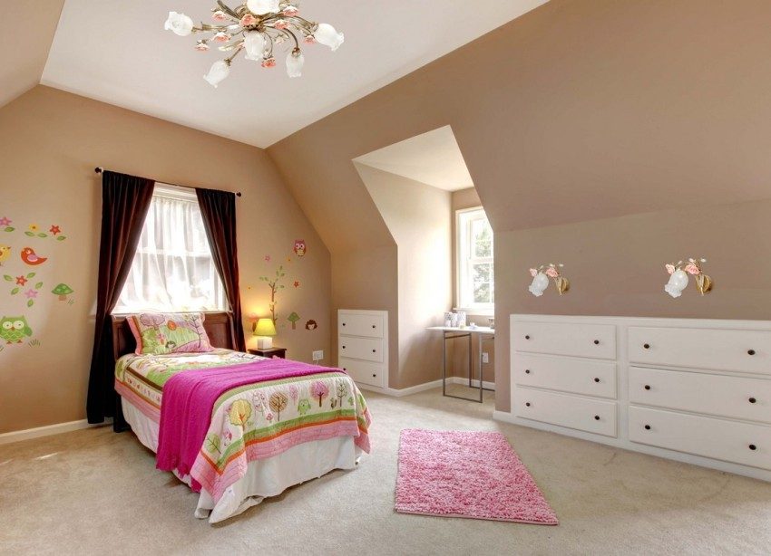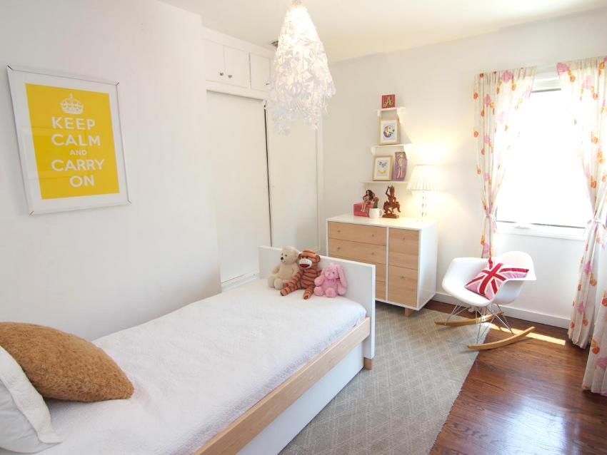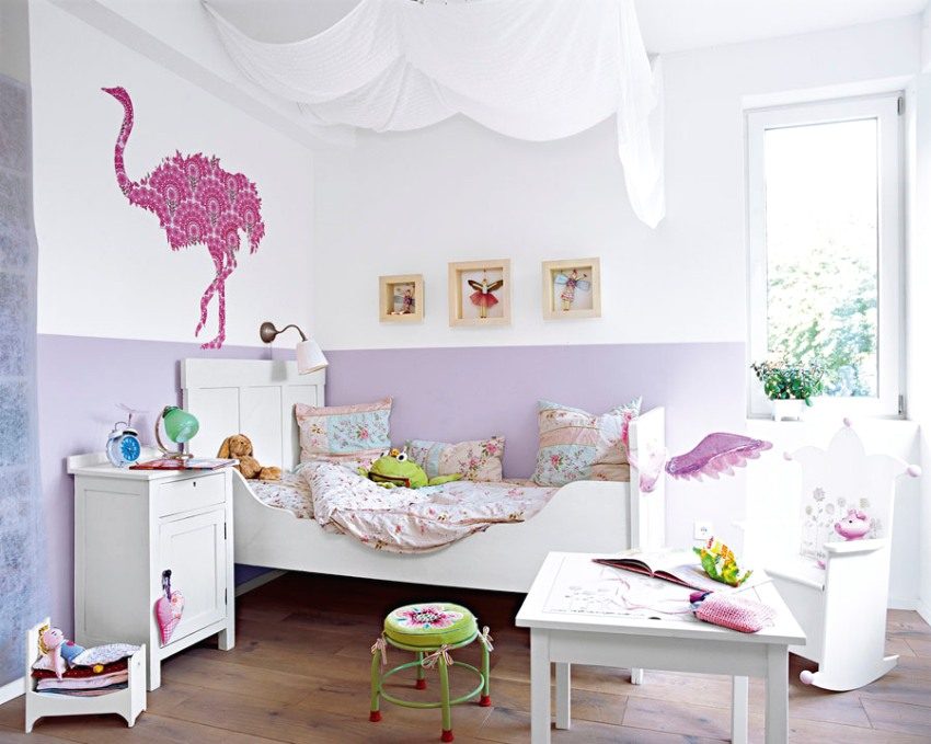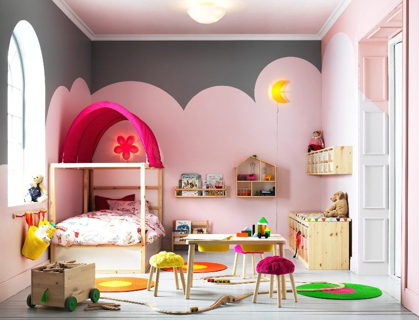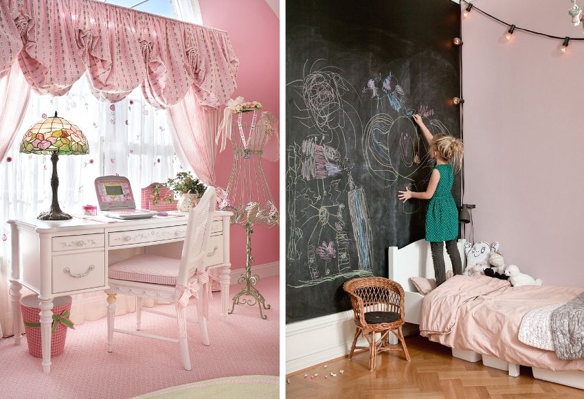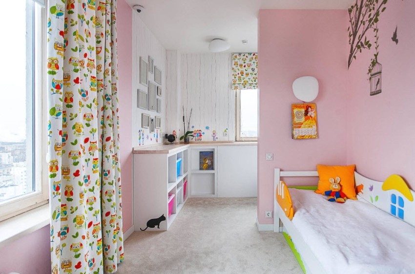 פיתוח ובנייה מחדש של חדר ילדים לילדה: דוגמאות לצילום