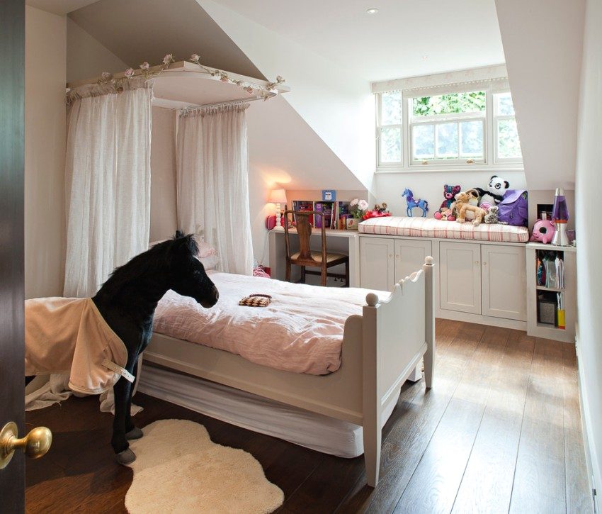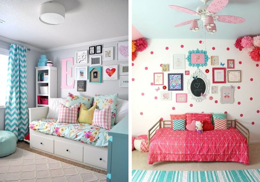 ילדה בגילאי 7-12 שנים תשמח לקחת חלק בתכנון עיצוב החדר שלה, כמו גם בבחירת חומרי הגמר. בנוסף, הדור הצעיר מפתיע לפעמים מבוגרים ברעיונות יצירתיים משלהם, שקל ליישם. לכן, חובה להקשיב לדעתה של הבת, גם אם הילדה בת 10. צילומי חדרי ילדים, שהילדים הציעו להם רעיונות עבורם, בולטים במקוריותם.