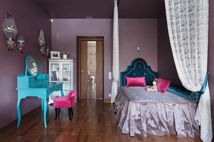 השילוב של גוונים מנוגדים בעיצוב החדר ימשוך בנות בגיל בית הספר ובגיל הספר.כתמים של גוונים רוויים כהים - שחור, סגול עמוק, גל ים - נראים מרהיבים בפנים. מבטא מנוגד יכול להיות אחד מקירות החדר, וילונות על החלונות, אלמנט של רהיטים, דלת פנים וכו '.