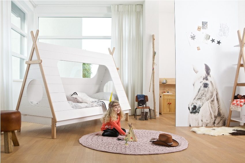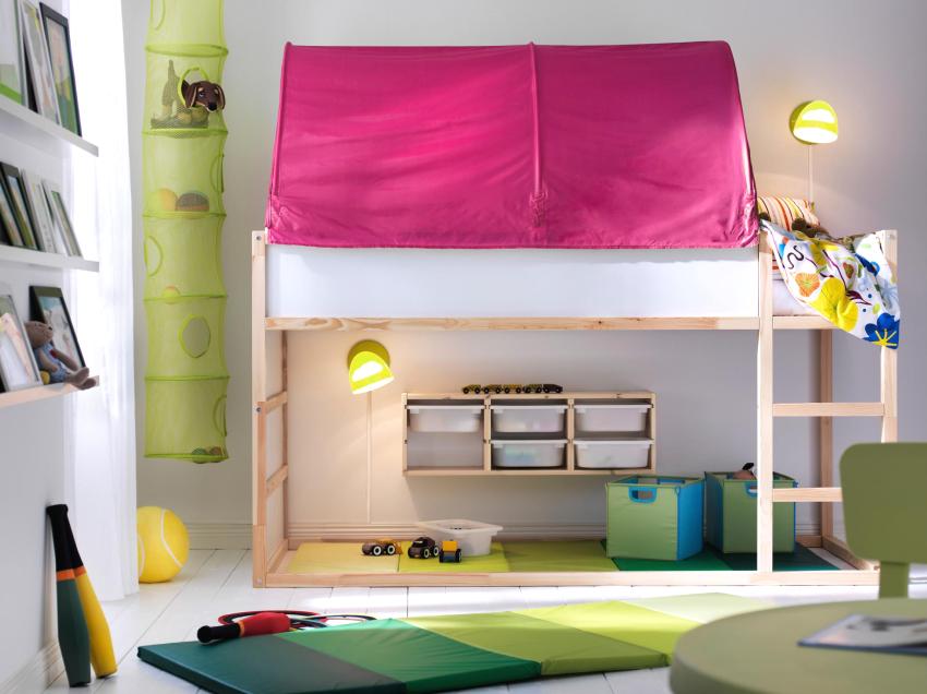 על המיטה להיות מצוידת במזרן אורטופדי נוח. אתה לא צריך לחסוך כאן כסף, ועדיף לשלם יותר מדי עבור איכות ועמידות, כי ילדים קטנים אוהבים לקפוץ על המיטה. רצוי למקם את מקום השינה הרחק מהדלת והחלון; כמו כן לא כדאי למקם אותו ליד הסוללה.