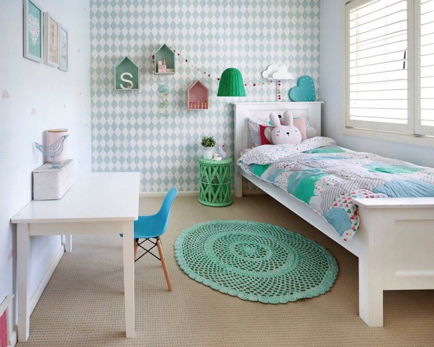 גווני מנטה יפים מסוגלים להחיות את חדרו של ילד, אשר משפיע גם הוא על שיעורים ולימודים. צבע מנטה עדין מסוגל להעניק תחושה מרגיעה ומרגיעה, בשילוב הרמוני עם צבעים כחולים וירוקים כהים עשירים. פנים בגוונים כאלה בהחלט ימשוך נערה מתבגרת.
