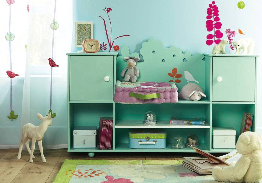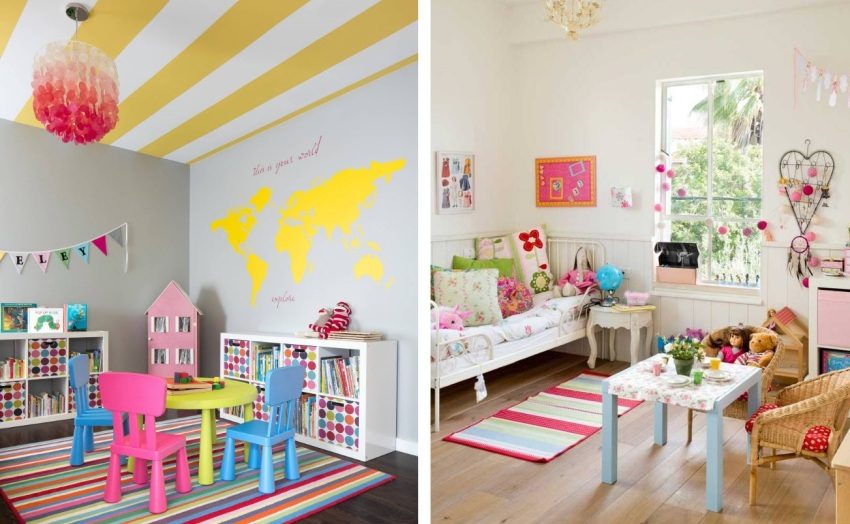 אם גודל החדר מאפשר זאת, ניתן לייעד אותו ולהפריד בין אזורי השינה והמשחק. לשם כך ניתן להשתמש במחיצה, מתלה, מסך וכו '. רצוי להציב שולחן קטן ומספר כיסאות באזור המשחק - לחברות ביקור, או לבובות ולארנבות קטיפה. במקרה זה, עדיף לתת עדיפות לרהיטי פלסטיק קלים כדי שהילדה תוכל להעביר אותם למקום כזה או אחר כרצונה. סטים צעצועים אינטראקטיביים בצורת מטבח, סופרמרקט או בית חולים מגוונים באופן מושלם את שעות הפנאי של הילד.