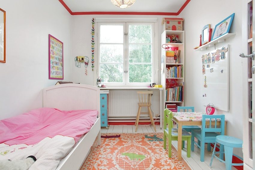 בחדר הילדים לילדה מגיל 1 עד 4, יש להקצות את החלק העיקרי של השטח לאזור למשחקים. הרצפה חייבת להיות חמה - ילד בגיל זה כבר זוחל והולך. רצפת פקק או שטיח רך עם קישוטים בהירים יהיו אופציה נהדרת במקרה זה. בנוסף למיטה ולארון, בחדר צריך להיות מקום לעבודה יצירתית, למשל, שולחן מותקן, כן כן, צעצועים חינוכיים אינטראקטיביים וכו '.