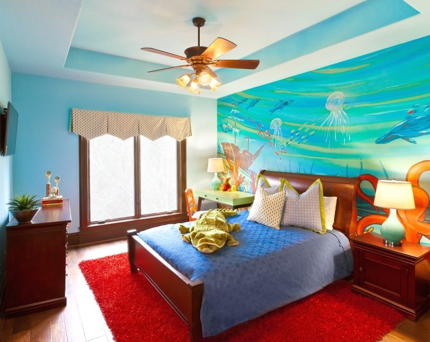 איור נוצר טפט נוזלי על הקירות בחדר הילדים