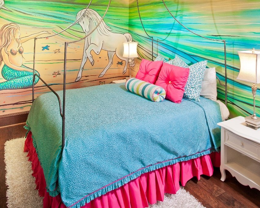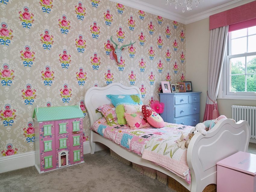 טפט לחדר ילדים לילדה: דוגמאות לצילום