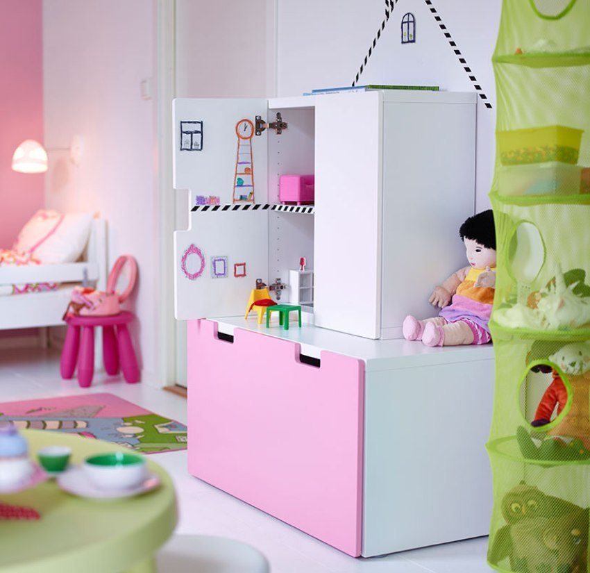 מערכות האחסון צריכות להיות מרווחות מספיק כך שאפשר לאחסן את כל חפצי הילדים בחדר אחד - בגדים ונעליים (כולל עונתיות), צעצועים, חומרים חינוכיים, ספרים, סטים ליצירתיות ותחביבים (שולחנות מתקפלים, כן גלילים, ציוד ספורט וכו '). תמונות של ארונות בחדרי ילדים לנערות מציגות דוגמאות חמודות לדגמים סגורים ופתוחים כאחד.