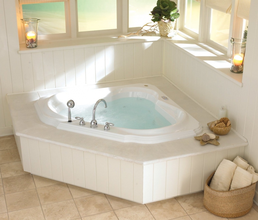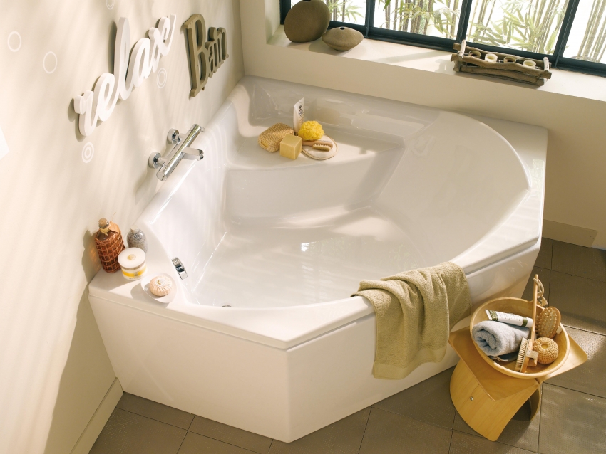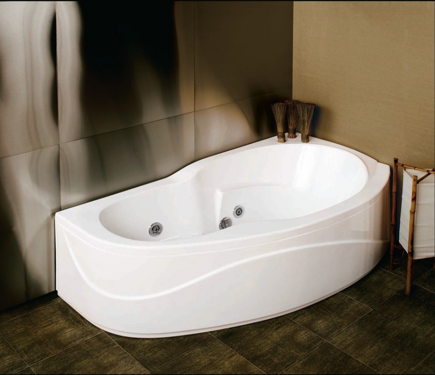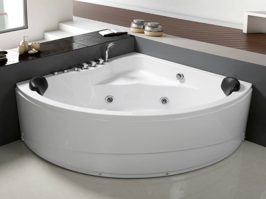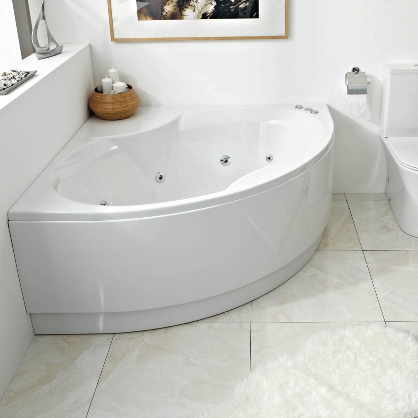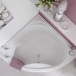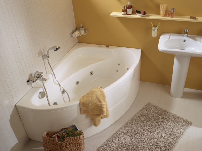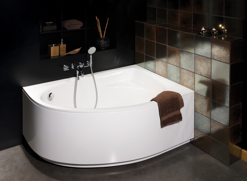 אמבטיה אקרילית פינתית יכולה להתאים באופן מושלם לכל חומר חיפוי בחדר האמבטיה