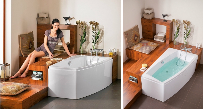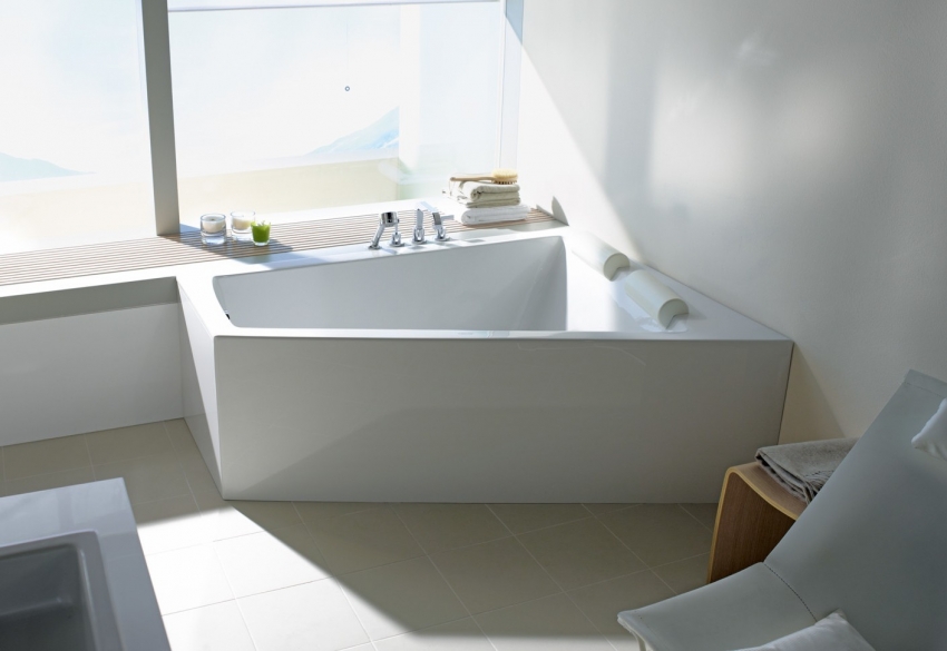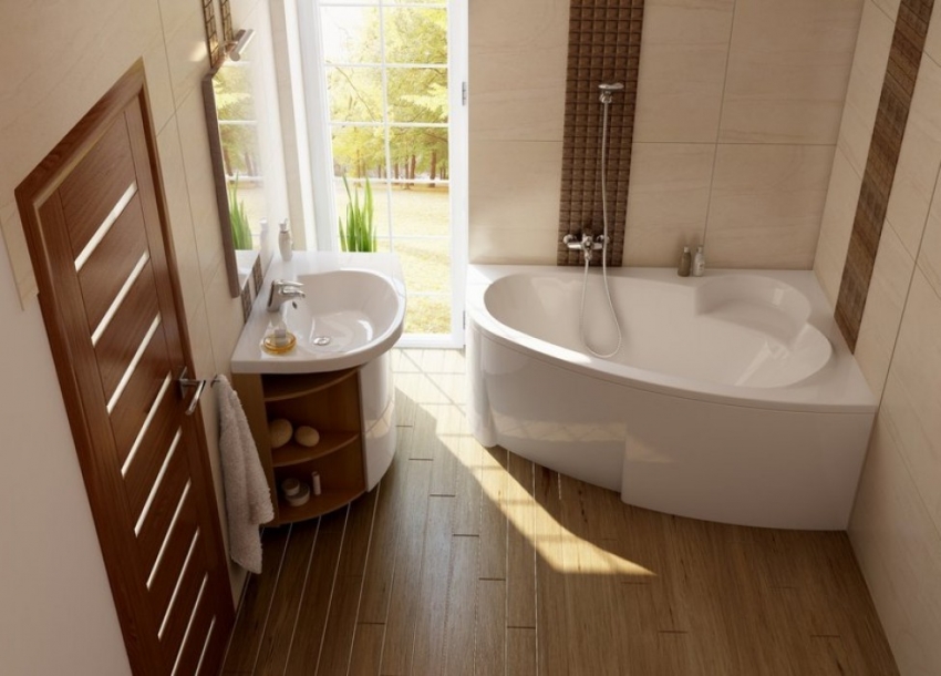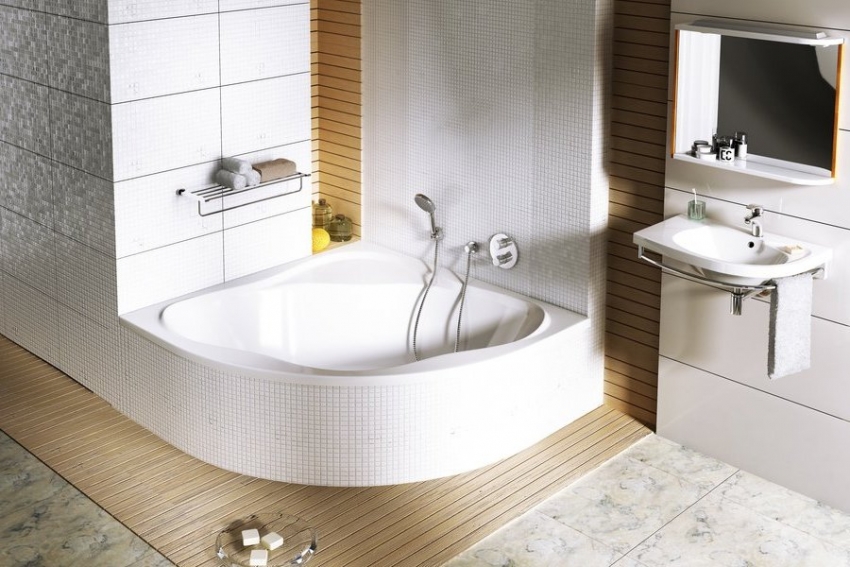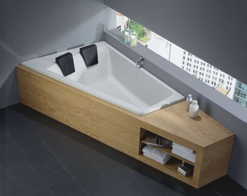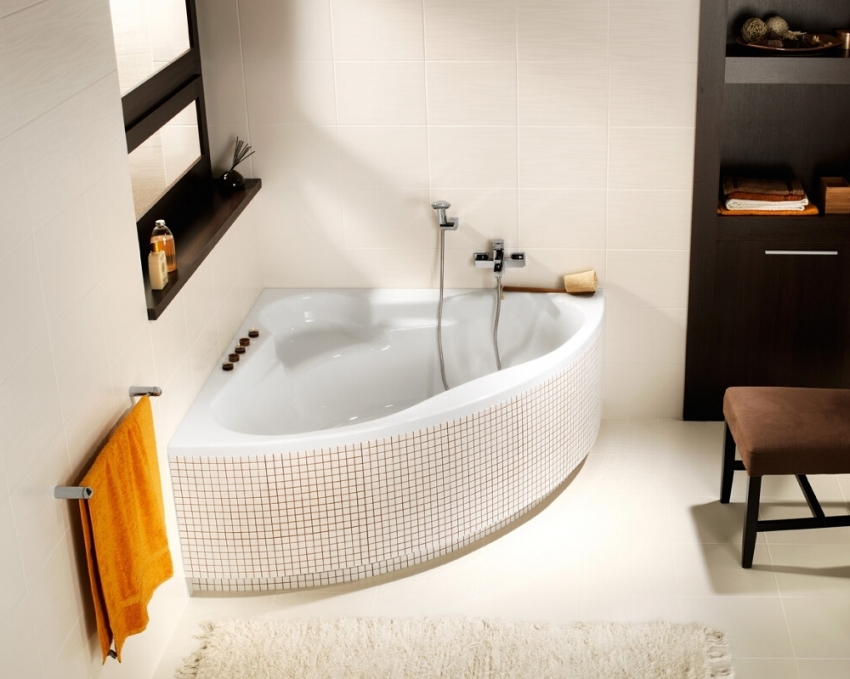 עצה מועילה!עבור חללים קטנים מומלץ להתקין אמבטיה אסימטרית שבזכותה ניתן יהיה להשתמש באופן רווחי בחלל הפנוי.