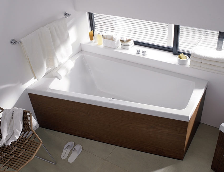 הערה!למרות הממדים הקטנים של מתקן הצנרת, הצורה הזוויתית היא זו שיוצרת נוחות מירבית בזמן השימוש באמבטיה.אפילו אדם גבוה במצב שכיבה יכול לבצע הליכי היגיינה.