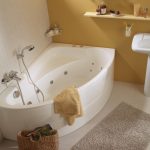 חדר אמבטיה קטן עם אמבטיה פינתית בצבעי לבן, בז ', ירוק בהיר או תכלת יראה חזותית גדול יותר, בשל העובדה כי נראה כי המוצר מתמוסס לחלל הפנים. כמו כן, בעת בחירת אמבטיה, עליכם לקחת בחשבון את סגנון העיצוב של עיצוב החדר. לדוגמא, לכיוון הקלאסי לא יהיה זה מתאים להתקין אמבט פינתי "חלל".