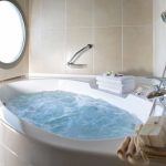 אמבטיה פינתית עם פונקציית הידרומסאז 'ומשענות ראש נוחות
