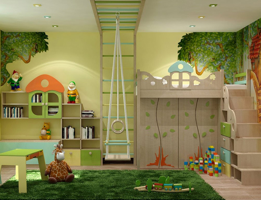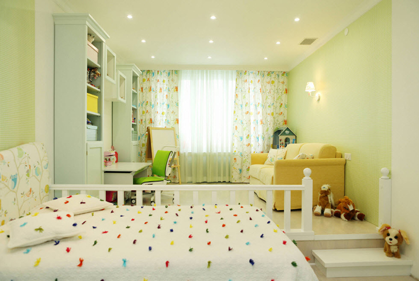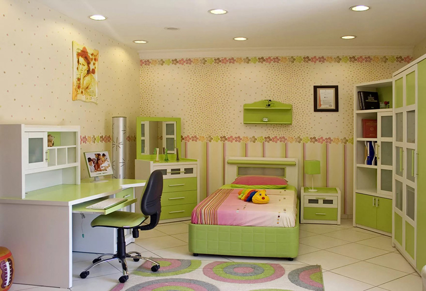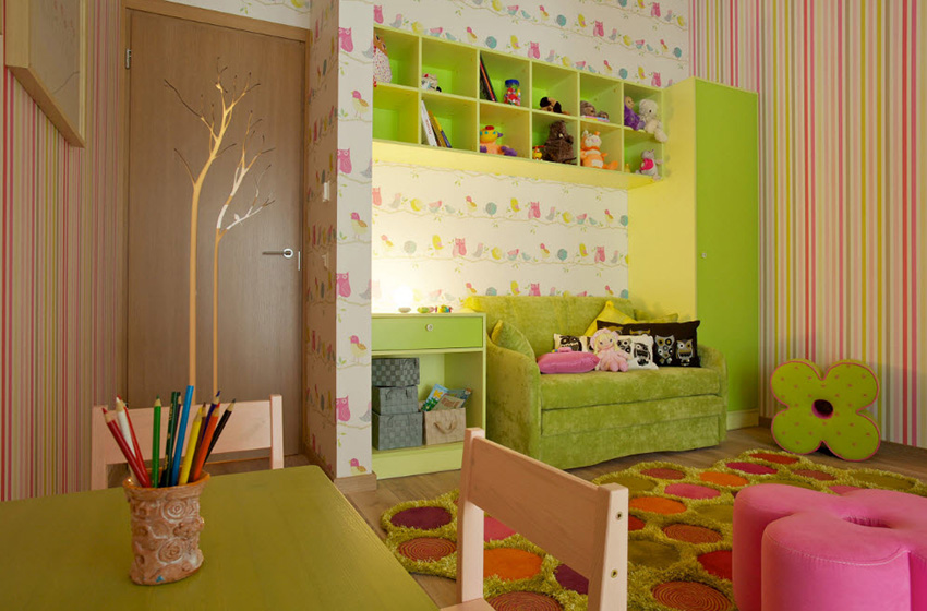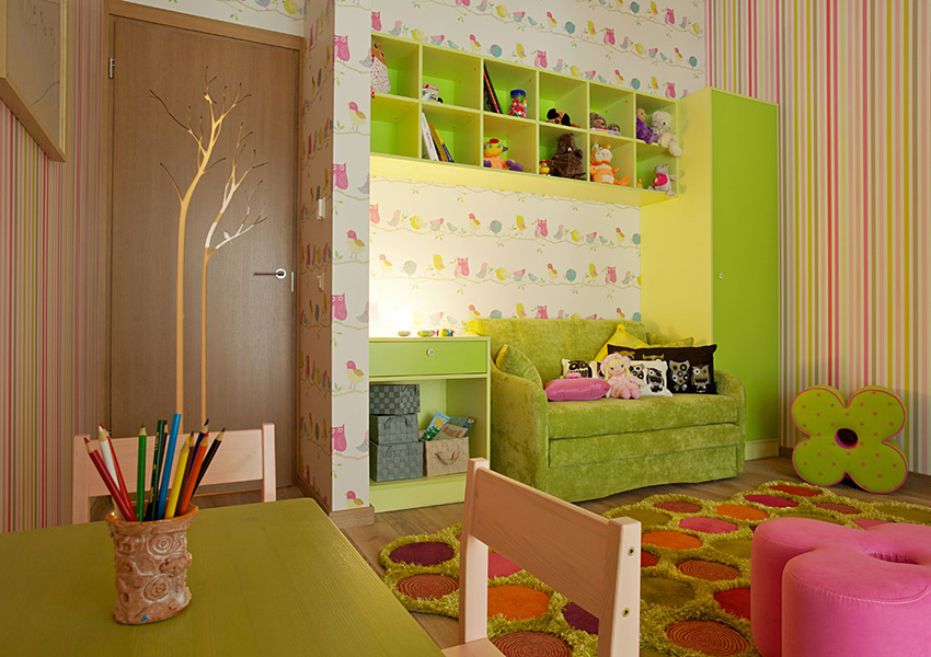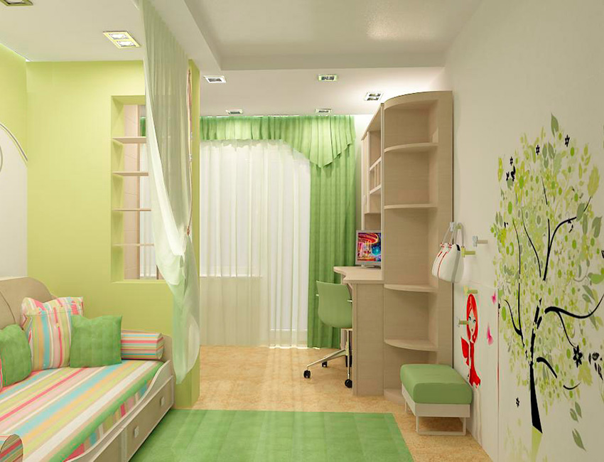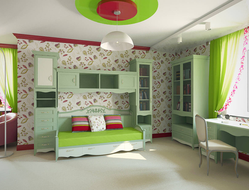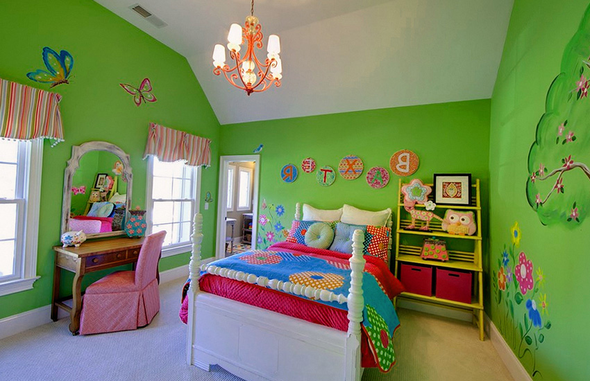לעתים קרובות, ירוק משמש לקישוט הפנים של חדר ילדים, ובמגוון רחב של גוונים.