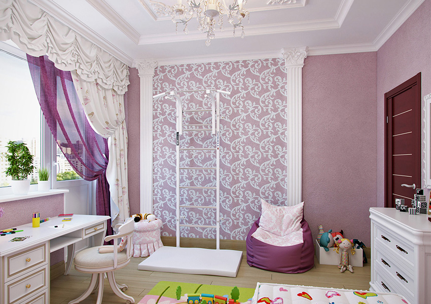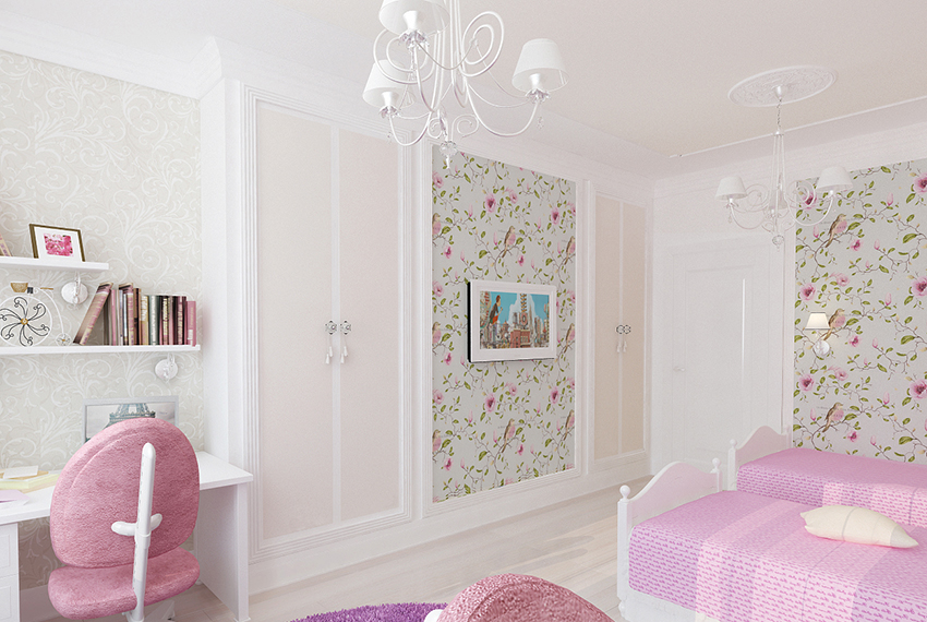 עיצוב טפטים לחדר ילדים לילדות: צילום חללי פנים בסגנון קלאסי ומודרני