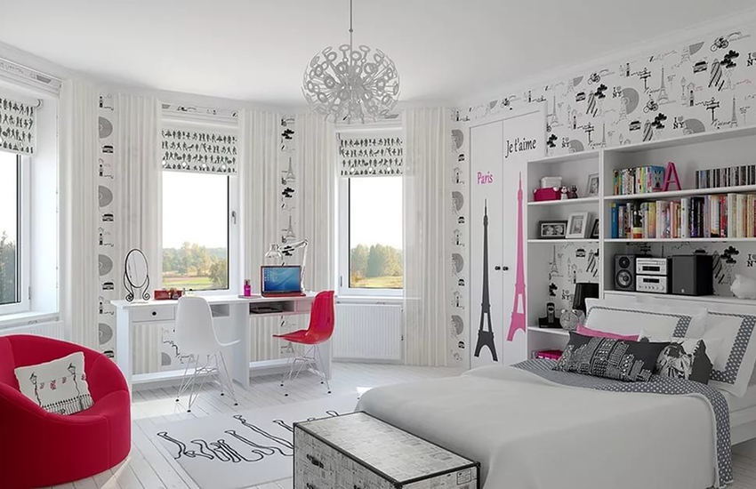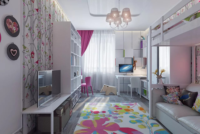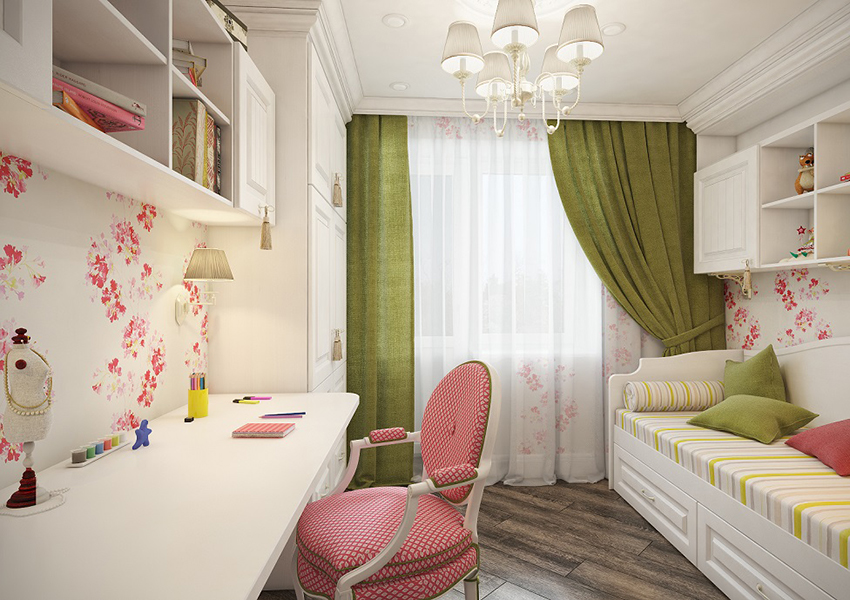 החדר צריך להיראות מרווח ובכל זאת להיות מעשי. החדר בו מתגוררת הילדה המתבגרת יכול להיות מעוצב בעיצוב קלאסי או בסגנון מינימליסטי. במקרה השני, עדיף לקחת בדים רגילים בצבעים קרים או חמים.