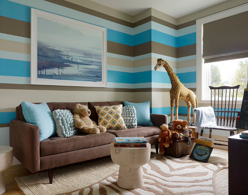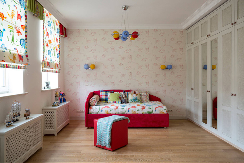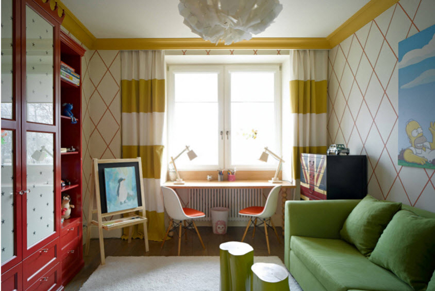 קירות נראים לא פחות אטרקטיביים בפנים חדר ילדים, שם סוג אחד של טפטים קובע את הרקע העיקרי של הקירות, והשני קיים רק באופן חלקי (במקום אחד או בכמה מקומות).