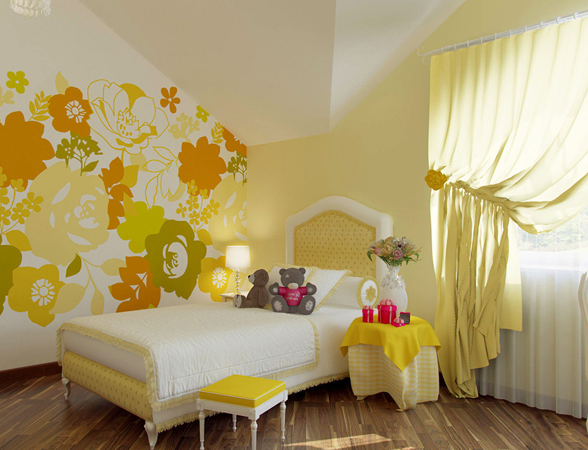 טפטים המיוצרים בצבעים צהובים נחשבים אוניברסליים, ולא רק לילדות בכל הגילאים, אלא גם לילדים משני המינים. כמובן, רק צבעי פסטל מותרים בחדר השינה של הילדים. אפשר להשתמש בגוונים צהובים עמוקים ועשירים, אך עליהם להיות מושתקים.