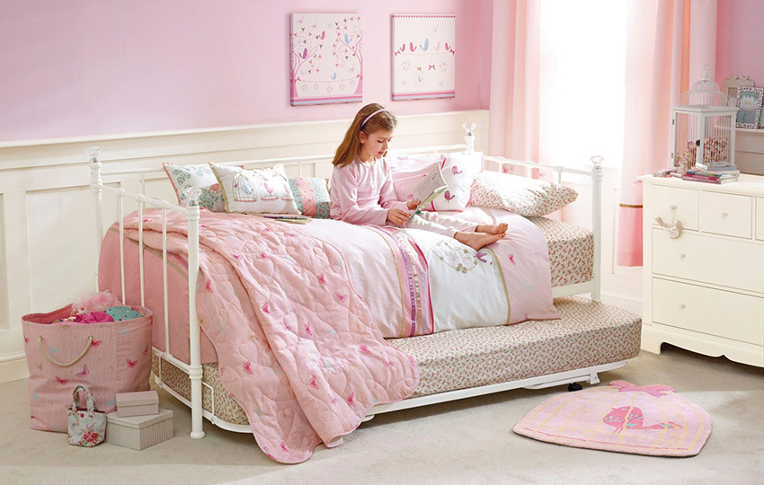 לילדה בגילאי 6-9 שנים תוכלו להרים טפט ורוד. בדים יכולים להיות פשוטים או מעוטרים בהדפסים מקוריים.