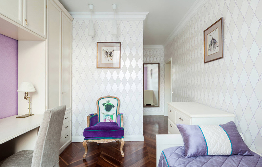 טפט לילך הוא אפשרות רב-תכליתית לבנות בכל הגילאים. צבע זה קשור למסתורין, רומנטיקה וקסם. האווירה שהוא יוצר חושפת את הפוטנציאל של אנשים יצירתיים.