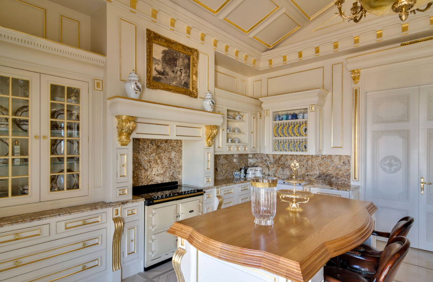 La cuisine d'angle classique prévoit la présence de meubles de cuisine luxueux en bois décorés de sculptures, de plafonds à caissons d'origine avec moulures en stuc. Naturellement, tout cela nécessite beaucoup d'espace, ce qui n'est pas suffisant dans une petite pièce, il est donc préférable de laisser cette option pour aménager des cuisines spacieuses dans des maisons de campagne ou de grands appartements. Pour les petites pièces, le style moderne de la cuisine d'angle est plus approprié - moderne, qui ne diffère pas par la pompe des classiques.