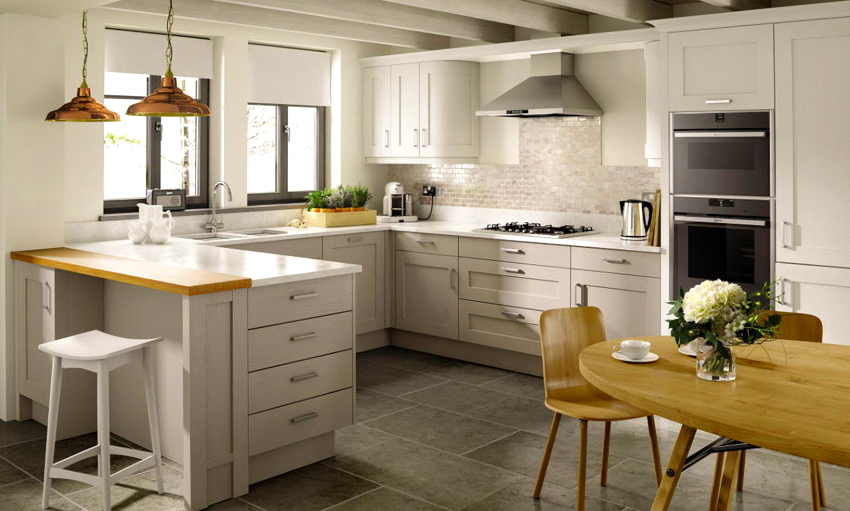 Lors du choix des matériaux pour aménager une cuisine avec la lettre G (ou toute autre disposition), il est important de se rappeler que vous devez choisir des matériaux de haute qualité résistants à l'humidité, résistants à l'apparition de champignons, aux dommages mécaniques et faciles à entretenir.