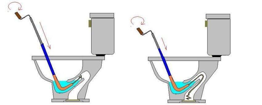 Jei vamzdis užsikimšęs dėl to, kad įstringa dideli buitinių atliekų gabalai arba didelis riebalų ir purvo kamštis, stūmoklis gali neišvalyti kanalizacijos. Šiuo atveju patartina naudoti efektyvesnį prietaisą - vandentiekio kabelį kanalizacijos valymui. Kabelis yra lanksti metalinė plieninė viela, kurios skerspjūvis yra apie 3-4 mm, o gale yra rankena. Šį santechnikos asistentą galima įsigyti specializuotose santechnikos parduotuvėse.