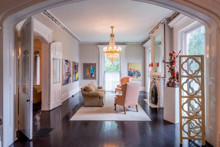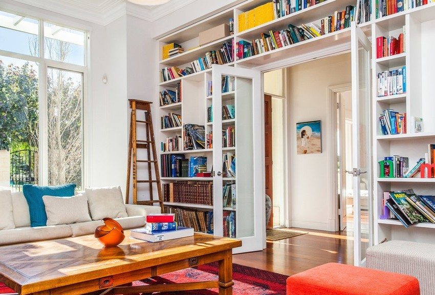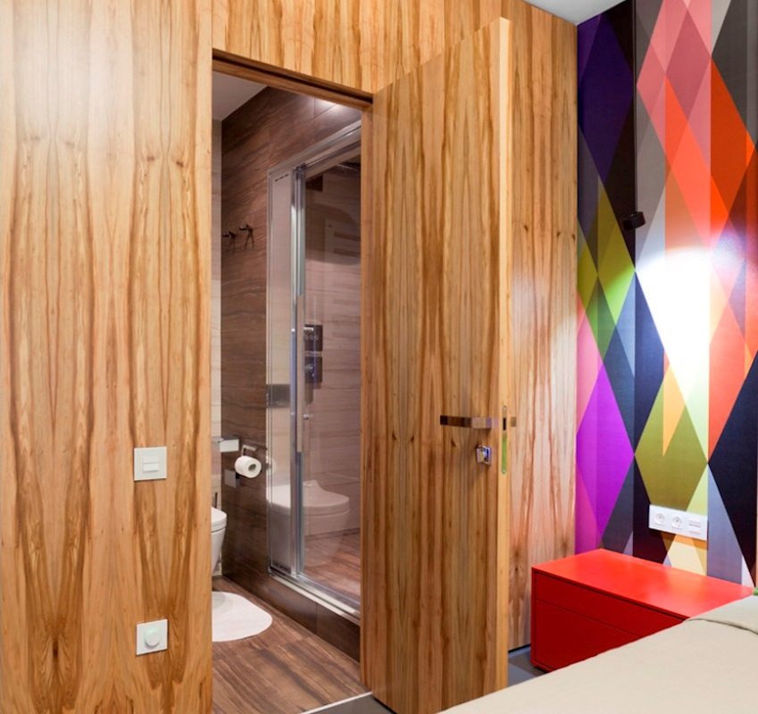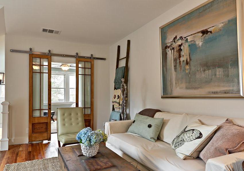 Praktinis stumdomos durys gyvenamajame kambaryje